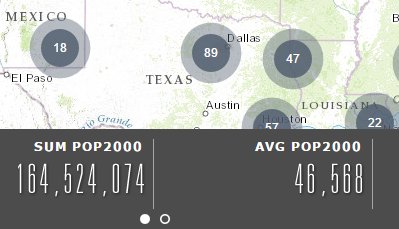 サマリー ウィジェットはマップの下部に表示され、集計結果はウィジェット パネルに表示されます。